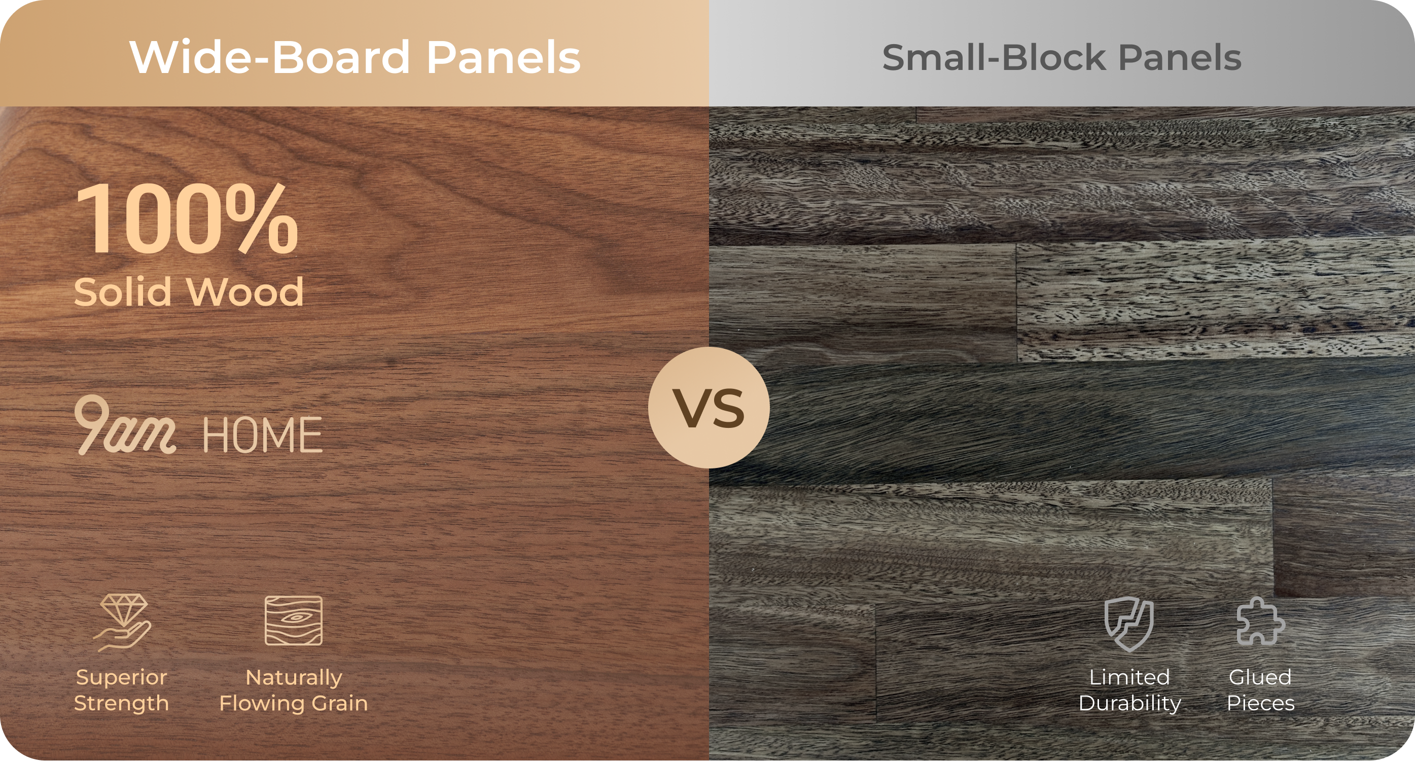 At 9am Home, we insist on using FAS-grade solid timber, crafted from full-length boards with clean joins. This ensures smoother grain, minimal colour variation, and a 100% authentic wood texture—natural beauty you can see and touch.