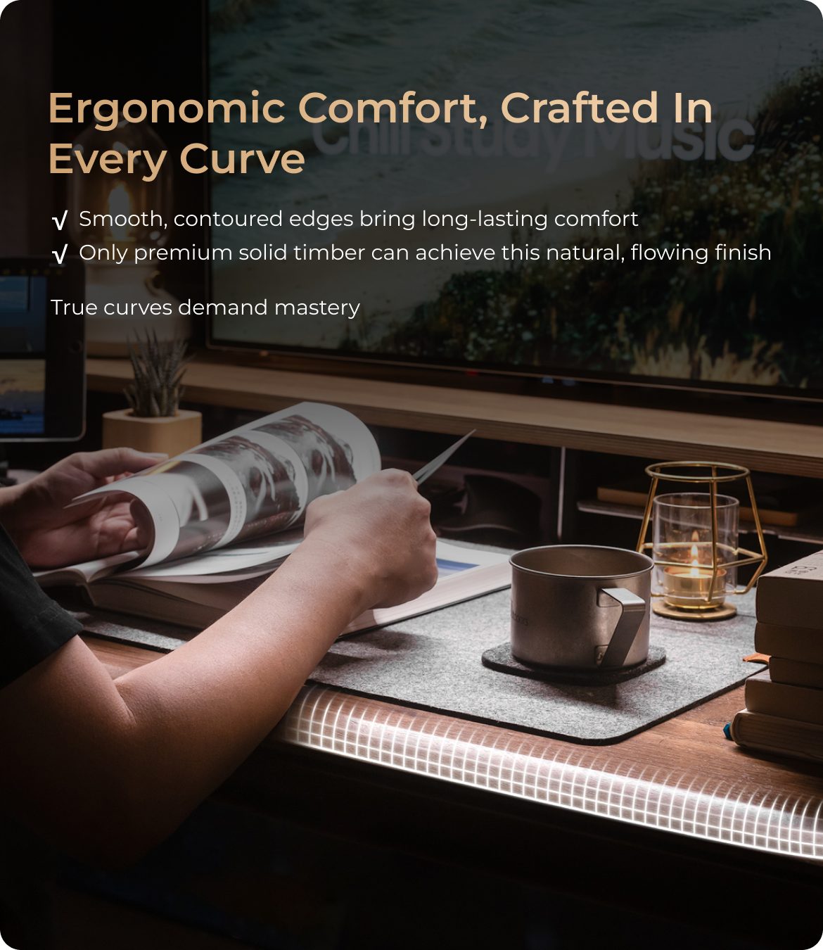 From the very beginning, we set out to redefine what a standing desk could be. Not just a table that moves, but a crafted piece that blends technology, design, and everyday living.