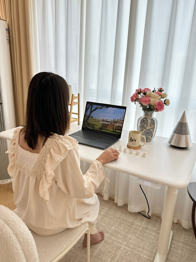 The desktop features a smooth 3D contoured edge that feels gentle against your arms. Its soft matte surface offers a pleasant texture and reduces glare through diffuse reflection, ensuring eye comfort during long hours of use.