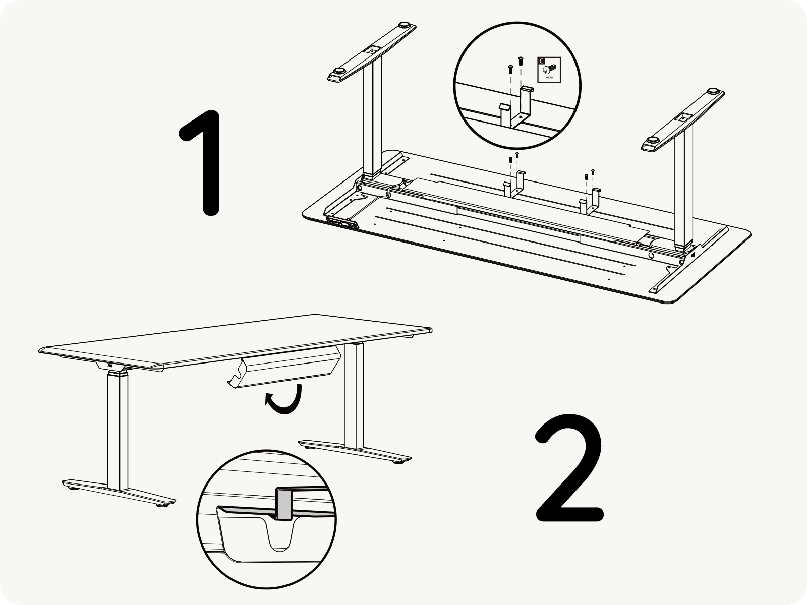 Install your desk cable management with ease — use a screwdriver or power drill to secure the screws into the desk panel. Once the cable management is in place, securely hang your cables, and your workspace will be transformed quickly.